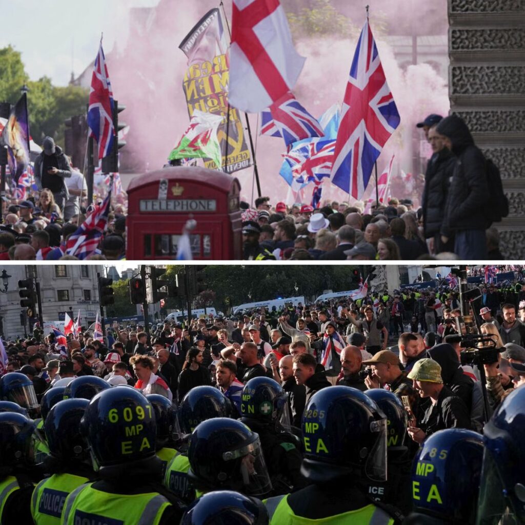 “Unite the Kingdom”-demonstrationen var arrangeret af højrefløjsaktivisten Tommy Robinson, hvis rigtige navn er Stephen Yaxley-Lennon.