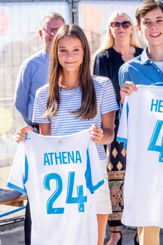 Athena smilede, da hun åbnede pakken med en smart Marseille-fodboldtrøje, der bar hendes navn og nummer 24.