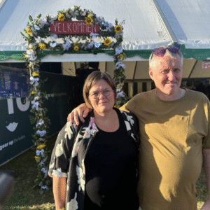 Glem forsamlingshus og hornblæsere: Par holder sølvbryllup på festival