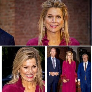Fra midnatsblå businessoutfit til bordeaux festlook med fjer: Dronning Maxima skiftede inden vigtig middag
