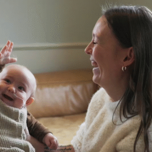Mor Anja med lille Uma, der har lært at vinke. Foto: Eddy Media/ TV 2. Ved Umas første fødselsdag kan familien se tilbage på et både skønt…