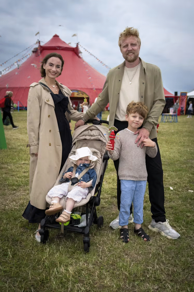 Claudia Rex og Pelle Emil Hebsgaard med deres to børn til premieren på Cirkus Summarum.