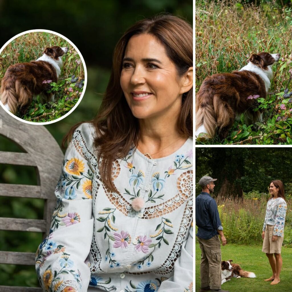Også kongefamiliens yngste medlem, border collien Coco, var med og rendte frit rundt, mens Søren og Mary gik en tur i haven og inspicerede.