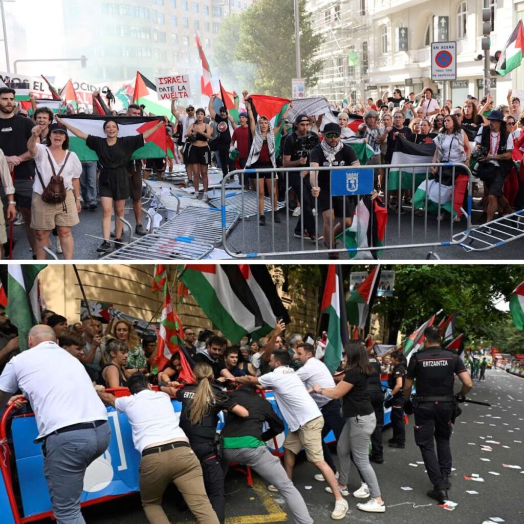 Det er ikke første gang, at demonstranter forstyrrer årets Vuelta. Flere etaper er blevet afkortet, og flere ryttere er røget i asfalten som følge af demonstranternes ageren.