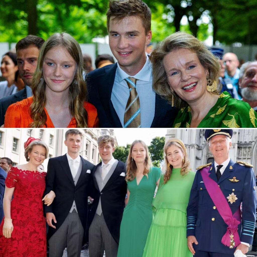 Det belgiske kongepar med deres fire børn, prins Gabriel, prins Emmanuel, prinsesse Eleonore og prinsesse Elisabeth