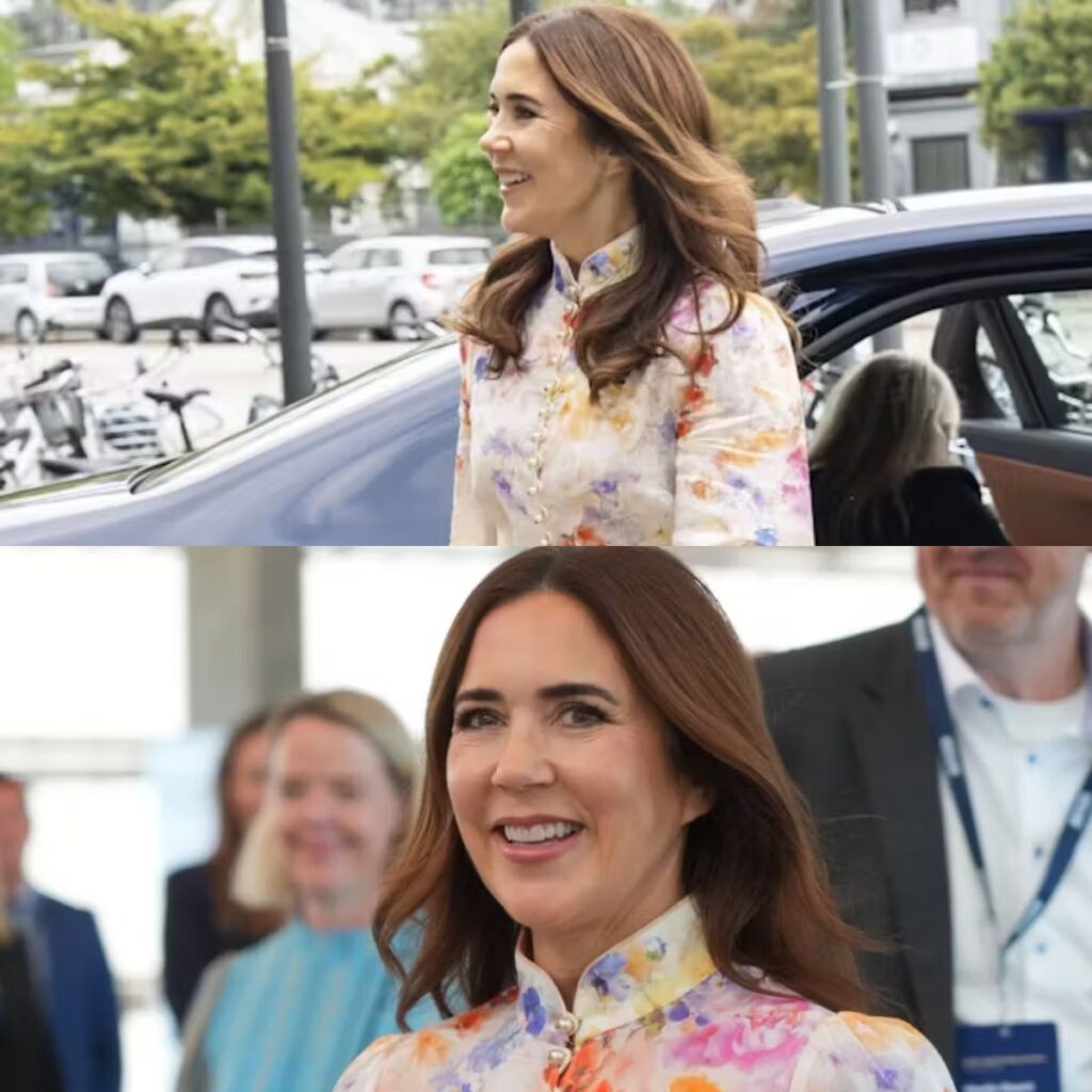 Da dronning Mary i dag besøgte det Samfundsvidenskabelige Fakultet i København, var hun i en sommerlig skjorte, sort nederdel og sorte sko med hæl.