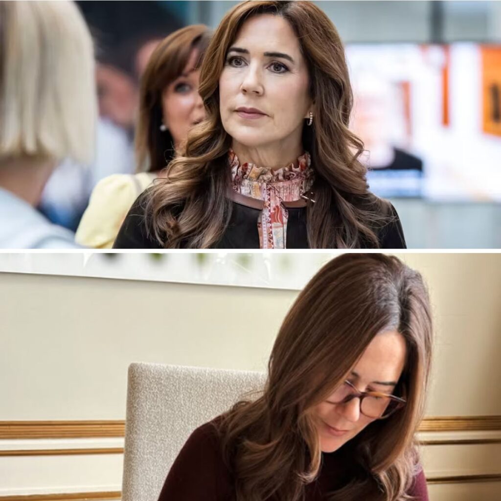 Således har Mary Fonden på Instagram delt et foto af dronning Mary, der sidder koncentreret bag sit skrivebord med en stak papirer og en kuglepen i hånden.