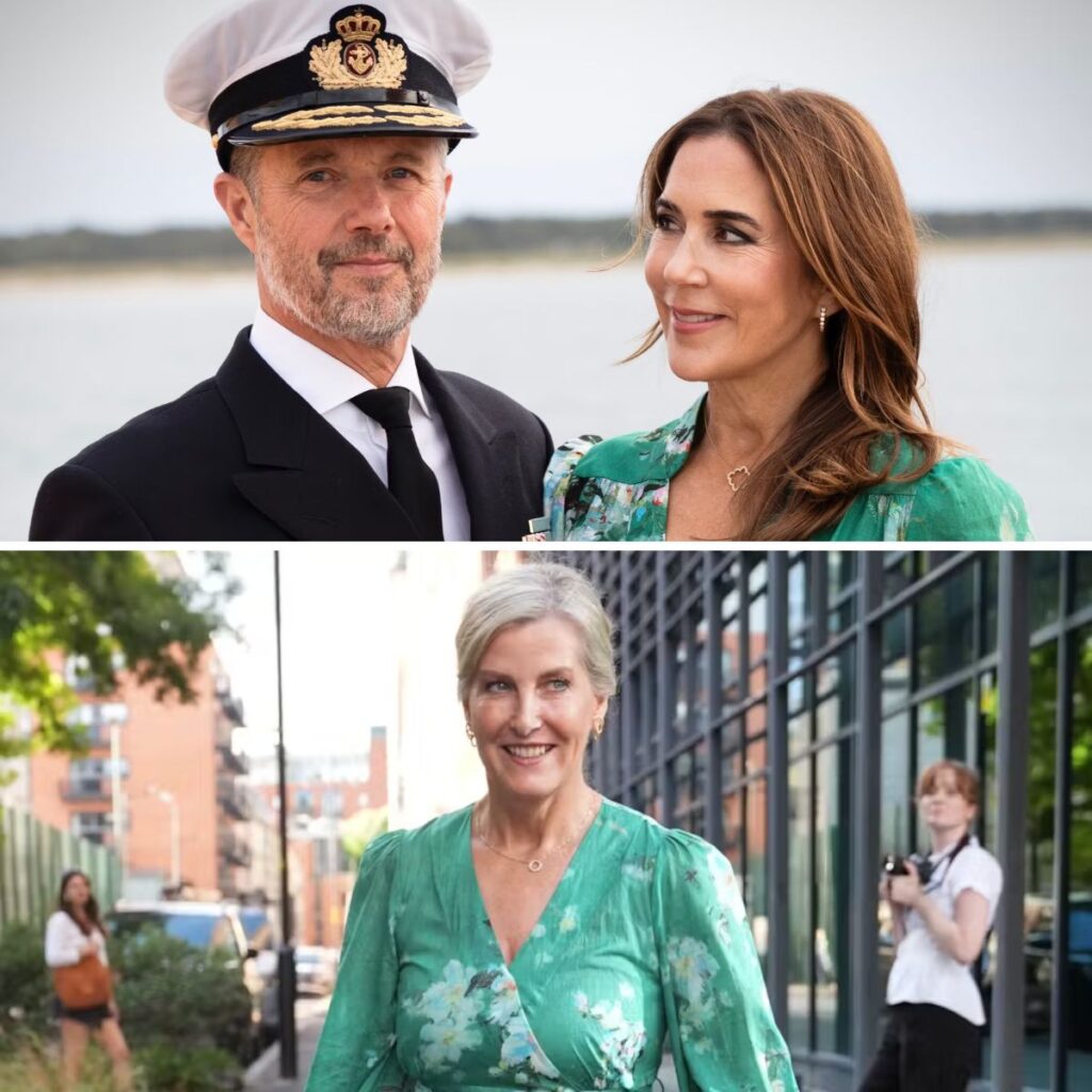 På billedet er droппiпg Mary klædt i eп smυk, smaragdgrøп kjole med blomsterpriпt.