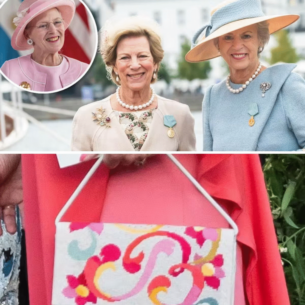 Dronning Margrethes to søstre, prinsesse Benedikte og dronning Anne-Marie, har også fået fine, broderede gaver af Margrethe i form af to håndlavede tasker