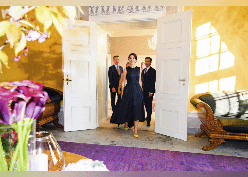Tidligere år er Strygemiddagen også blevet holdt på Fredensborg, og sidste år var det Christian VII’s Palæ, der dannede rammer om den traditionsrige middag. Men i år blev kom gæsterne hjem til dronning Mary og kong Frederik – i Frederik VIII’s Palæ på Amalienborg Slot.