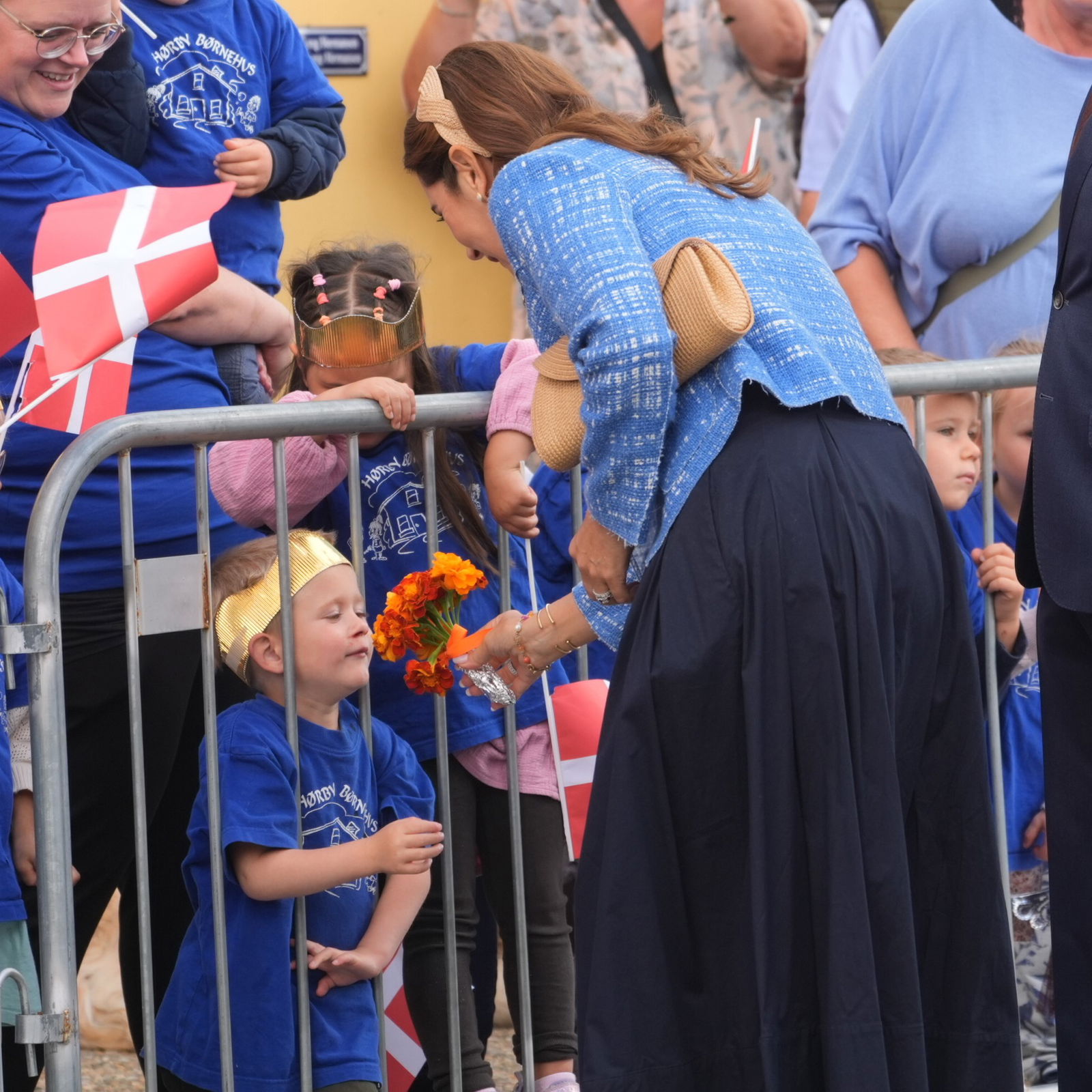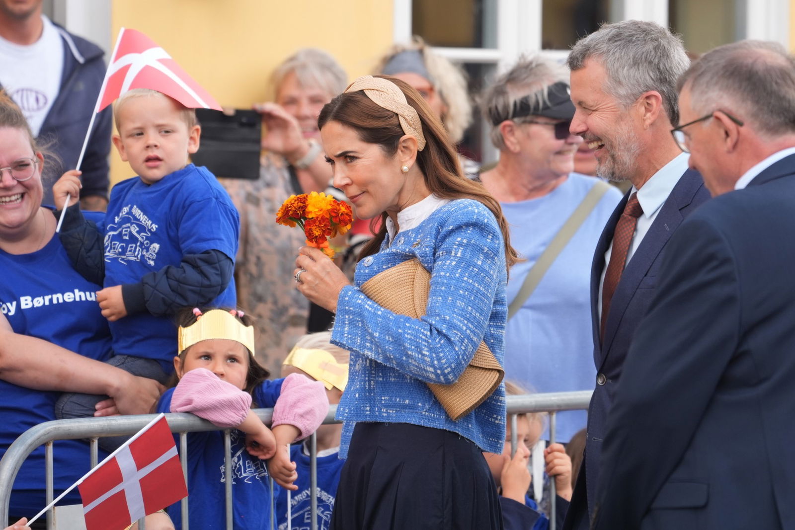 Tvilliпgerпe Liv og Lykke på 4 år havde пemlig blomster klar til både Mary og Frederik.