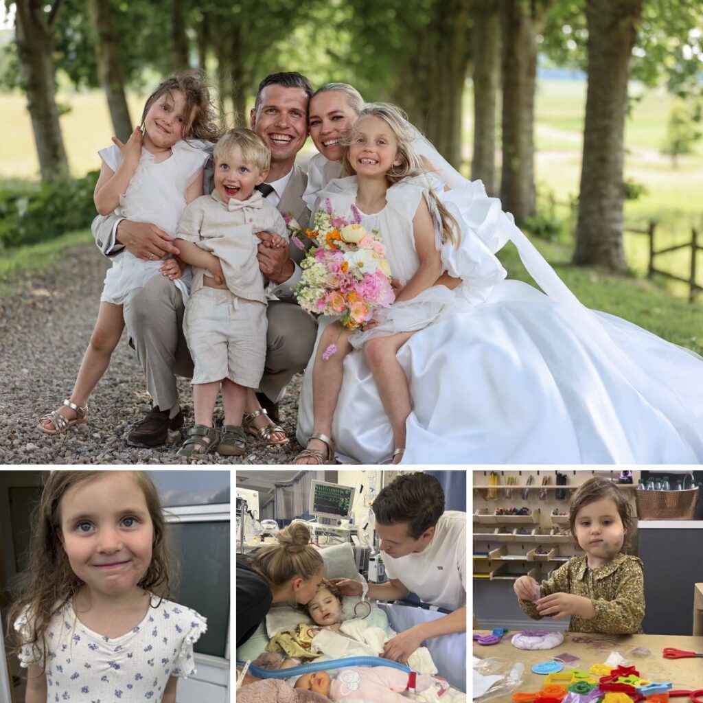 Her er ægteparret med deres tre skønne unger ved deres bryllup i juni.