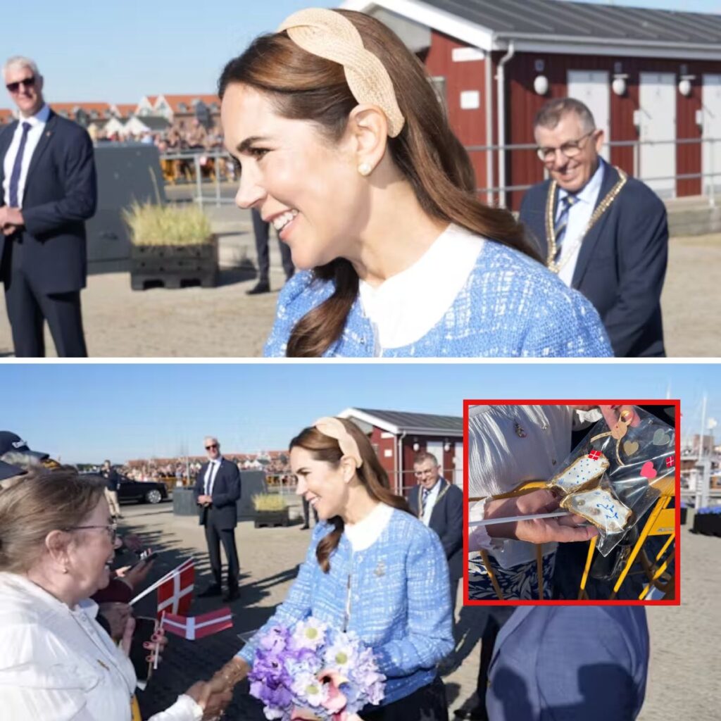 – Deres majestæt dronning Mary, jeg har taget en lille gave med til dem. Det er håndlavede østers. Det er lidt maritimt, og jeg tænkte, at de måske kunne pynte på kongeskibet, lød det fra Marianne Jensen.
