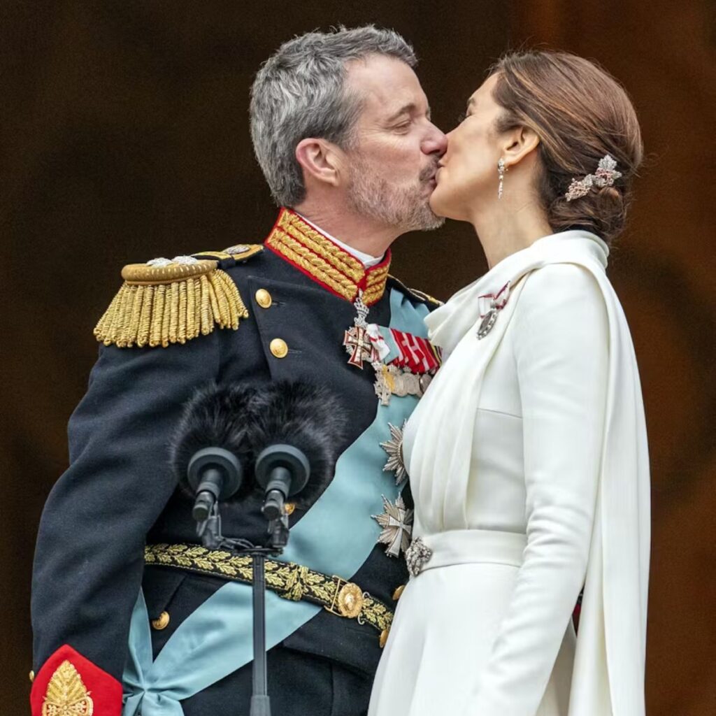 På balkonen stod kong Frederik og dronning Mary hånd i hånd og forseglede deres nye fremtid med et kys.
