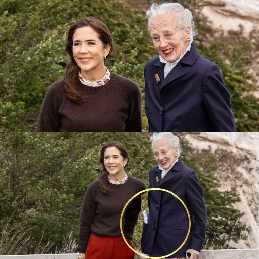 Hov, hvad stikker op af dronning Margrethes lomme? Gik rundt med det under hele besøget med Mary