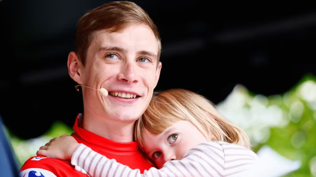 Jonas Vingegaard er omgivet af sine nærmeste under fejringen.
