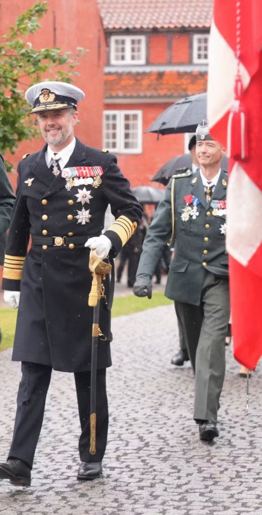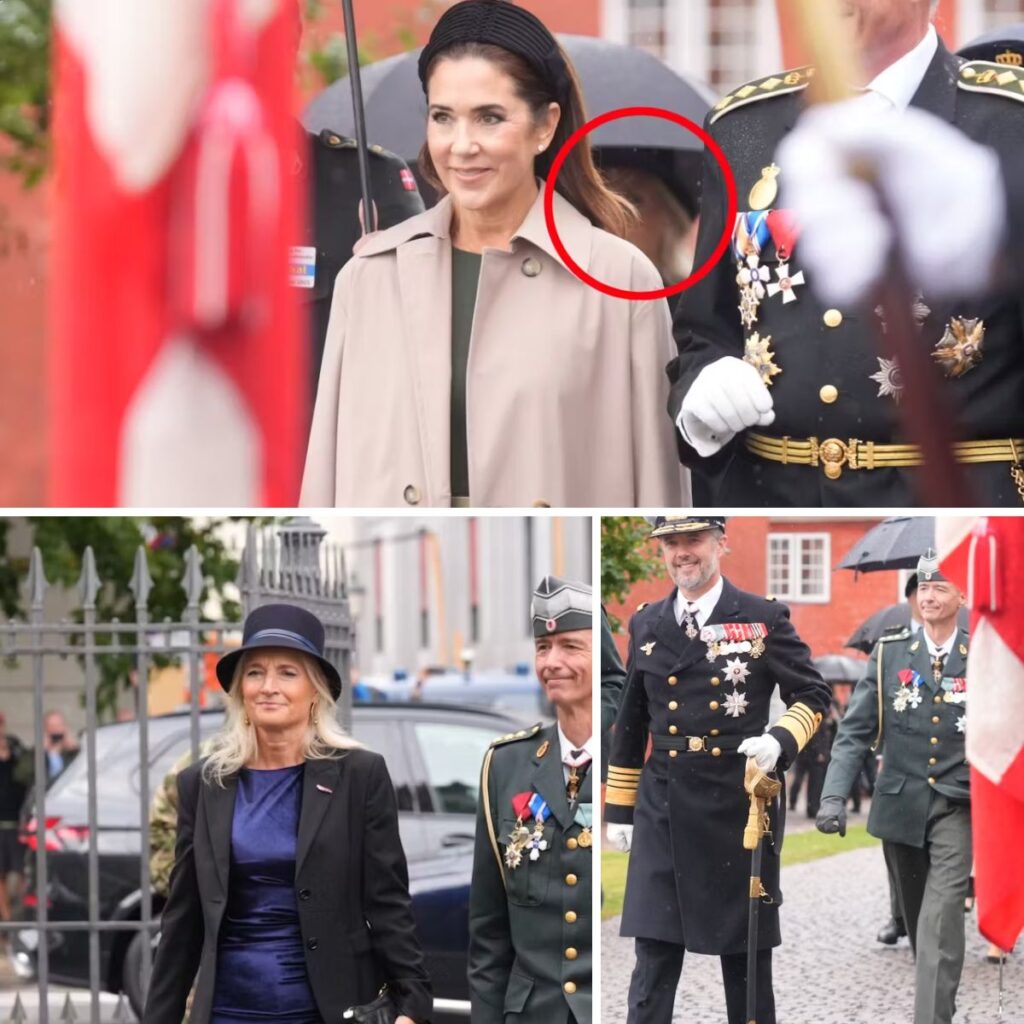 Da kong Frederik og dronning Mary ankom til mindehøjtideligheden på Kastellet i anledning af Flagdagen for Danmarks udsendte 2025 havde de et par af de nærmeste ansatte ved hoffet med.