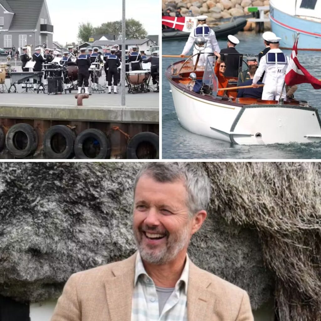 Kong Frederik og dronning Mary var naturligvis de første, der blev sejlet i chalup mod Kongeskibet Dannebrog.