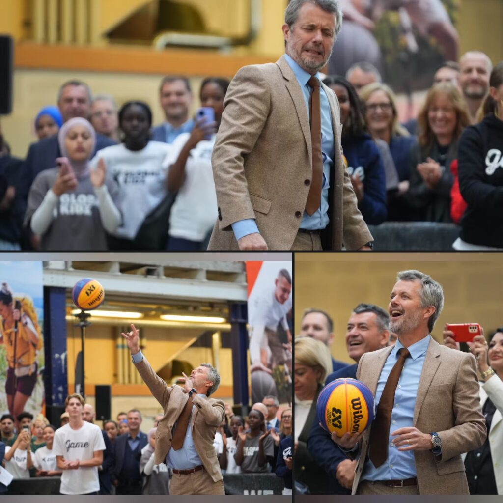 Sammen med kulturminister Jakob Engel-Schmidt og EU-kommissær for sport, kultur og ungdom, Glenn Micallef, skulle kong Frederik ”dyste” i en omgang basketball.