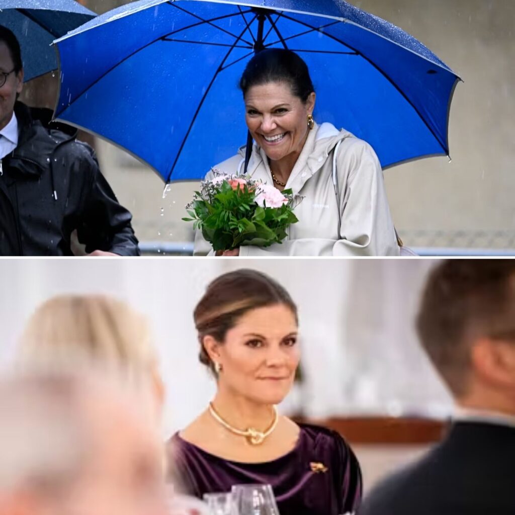 Kronprinsesse Victoria og prins Daniel blev overrasket af regnvejr, da de var på opgave i Gamleby, og det kom der fine billeder ud af.