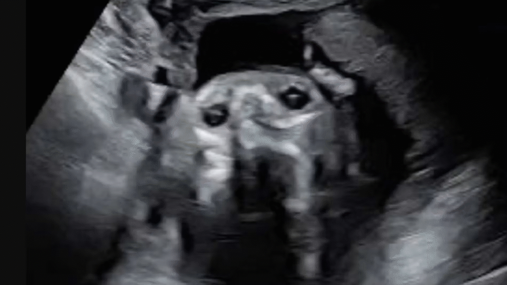 En gravid kvinde fik øjne så store som tekopper, da hun kiggede på sit scanningsbillede. For det ligner ved første øjekast, at hun er gravid med familiens elskede hund