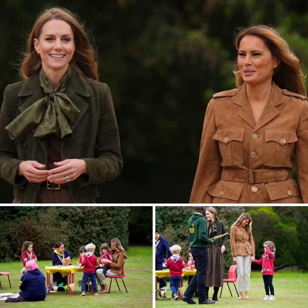 De skulle en tur i Frogmore Gardens, hvor de hilste på en gruppe små spejdere, og de så ud til at være begejstrede for førstedamen og prinsessens besøg.