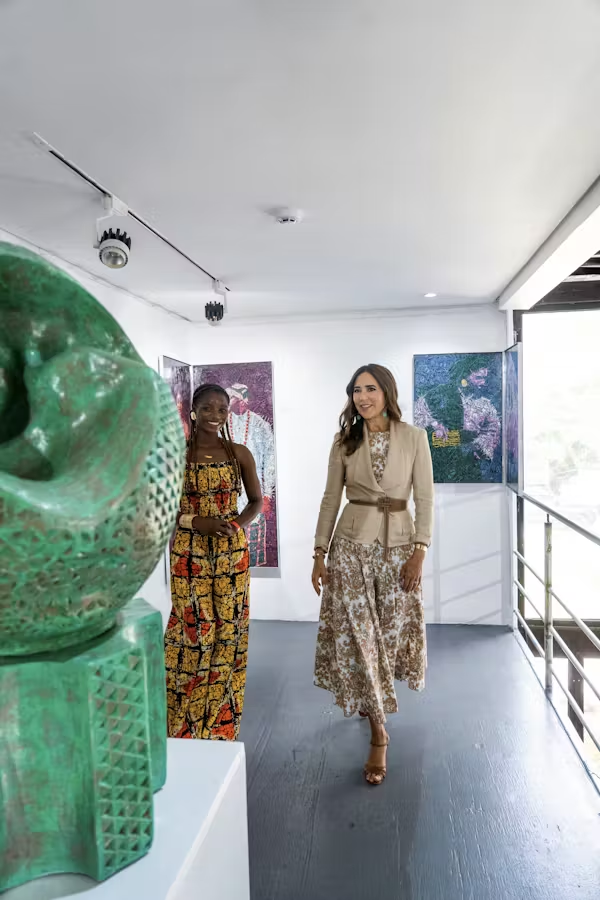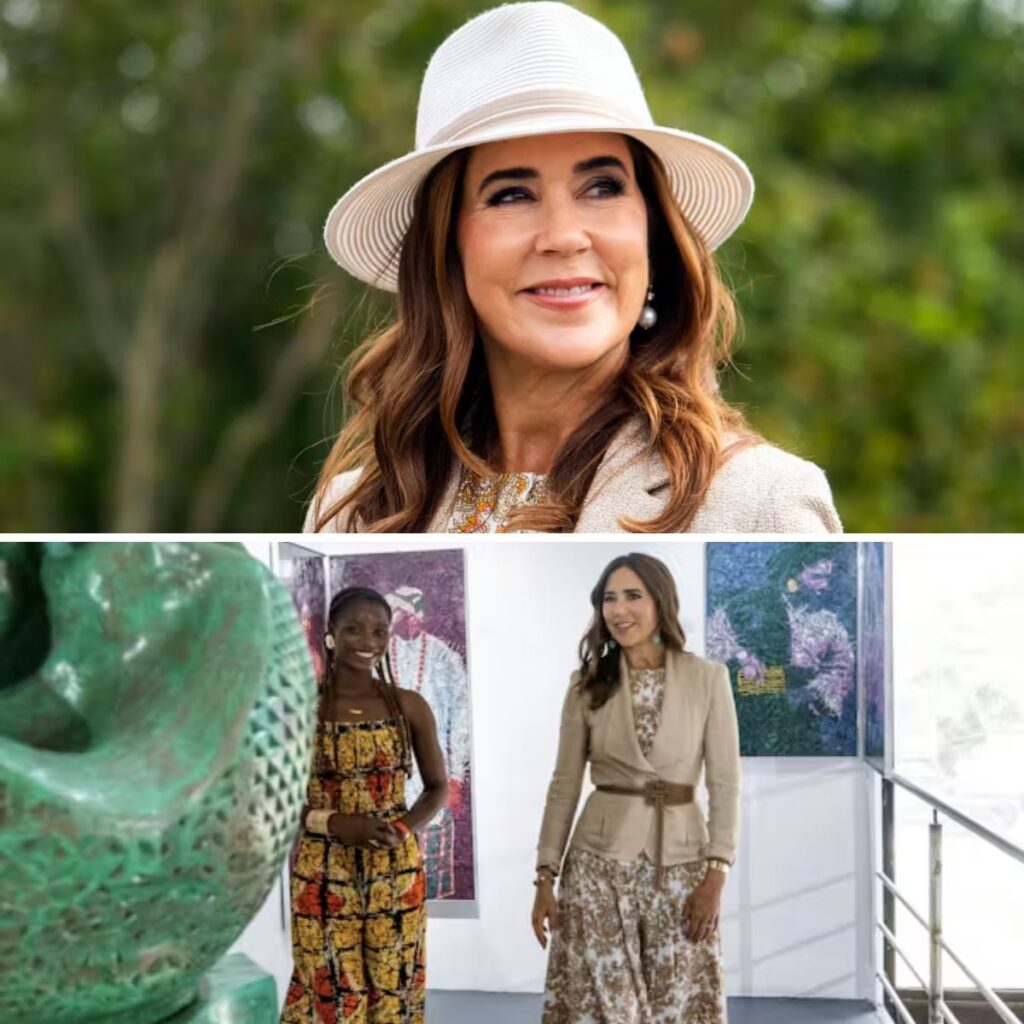 Den 25. juni så vi looket første gang, da hun var i Nigeria. Her bar dronning Mary ifølge UFO No More en kjole fra ME and EM med en blazer fra Ralph Lauren. I taljen var et bælte fra Max Mara.