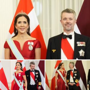 I dronning Marys løsthængende mørke lokker funklede et pragtfuldt brillantdiadem, da hun ankom til festmiddag på slottet i Riga i forbindelse med statsbesøget i Letland.