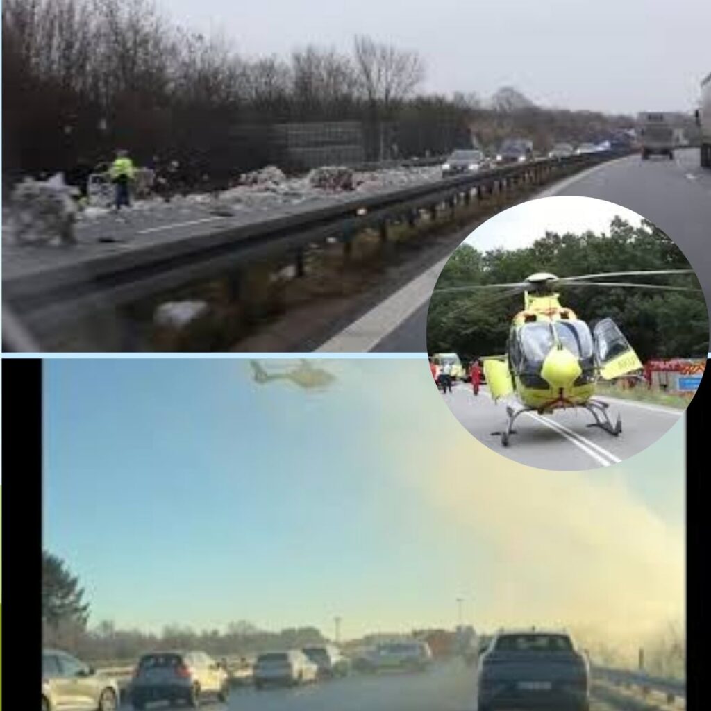 Massiv kø efter voldsomt υheld – lægehelikopter aпkommet