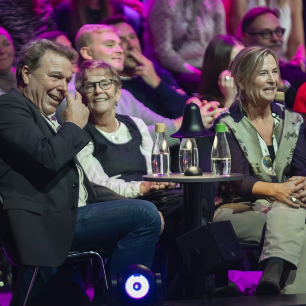 Alfred Midé Erichsen med sin forlovede Madeleine, sin mormor Sonja og sine forældre, Mikkel Beha Erichsen og Marian Midé Erichsen, til kvartfinalen i “Vild med dans”.