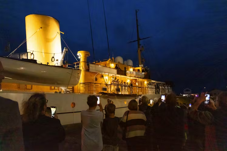 Da kongeparret torsdag aften forlod Samsø og sejlede af sted med kongeskibet Dannebrog, foregik det på fineste vis.
