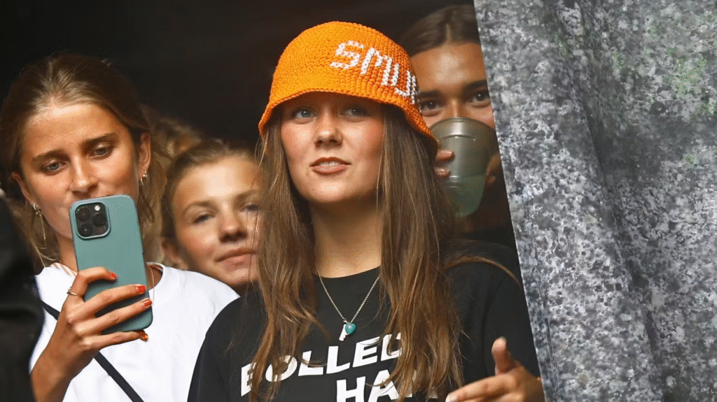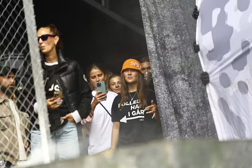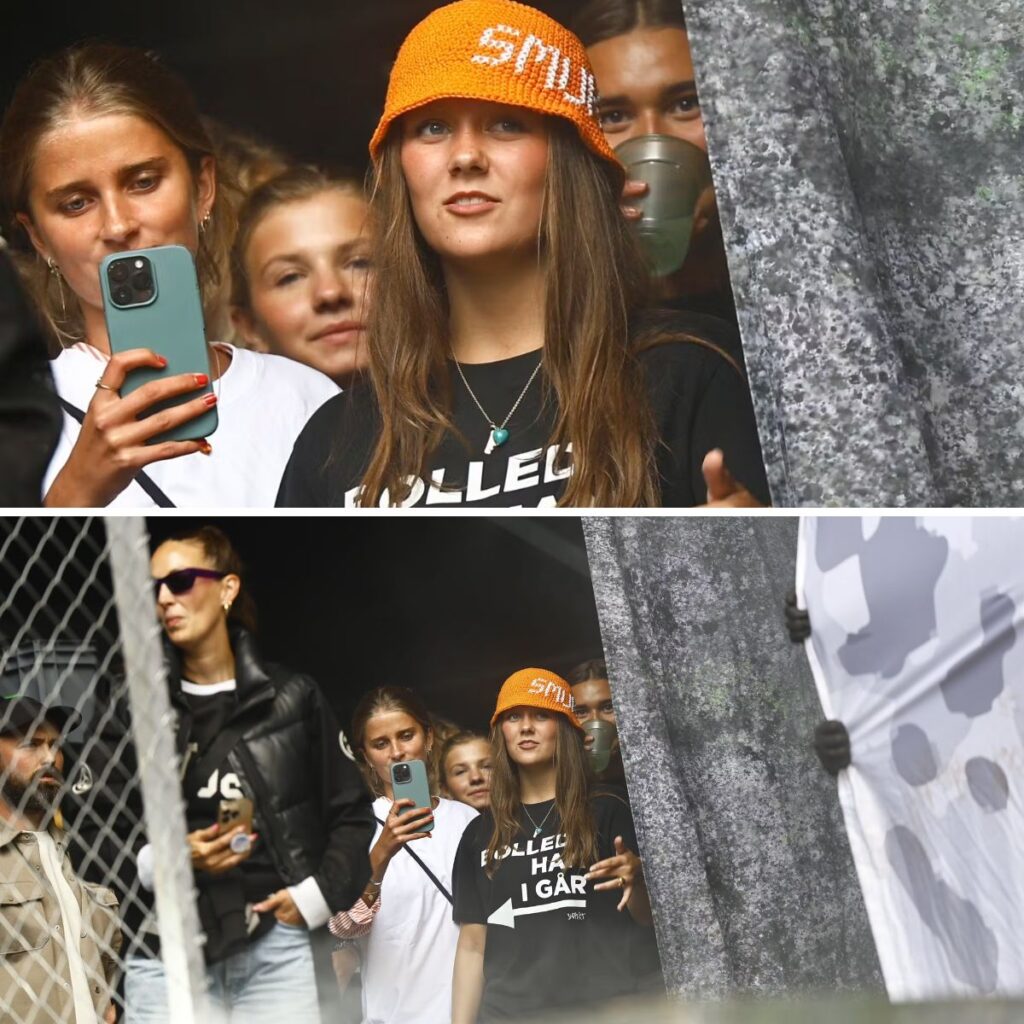 Den 18-årige prinsesse var hoppet i merchandise fra den danske rapgruppe, hvorpå der stod “Bollede ham i går” trykt over en pil, der pegede til højre.