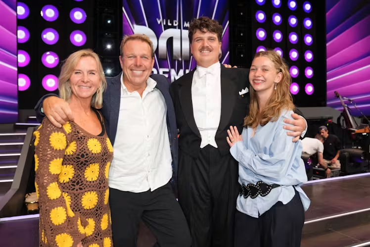 På forreste række i studiet på Østerbro sad Alfreds forældre, Mikkel Beha Erichsen og Marian Midé, samt hans forlovede, Madeleine.