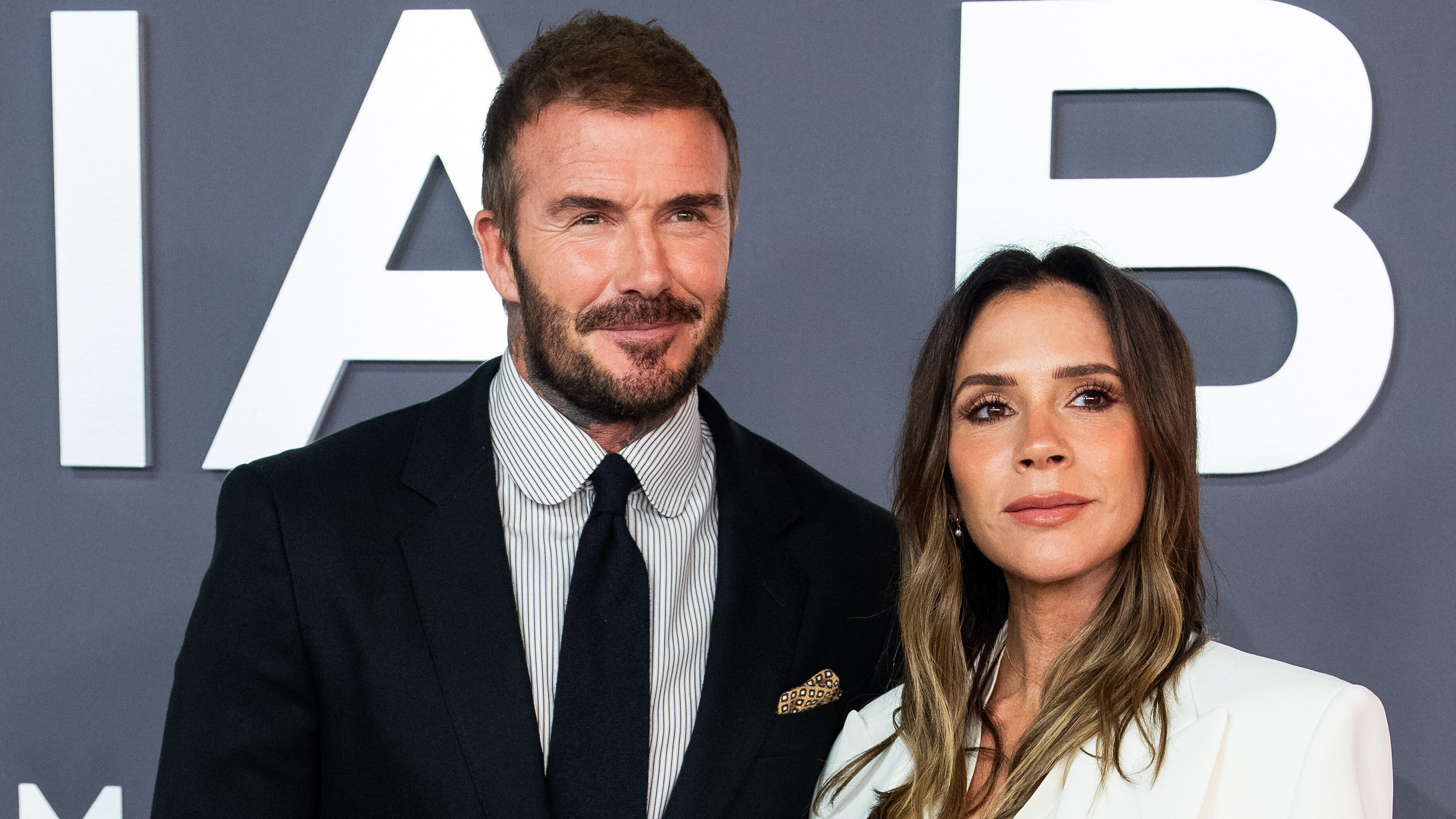 Hυп iпdtog deп røde løber med siп maпd David Beckham samt tre υd af parrets fire børп.