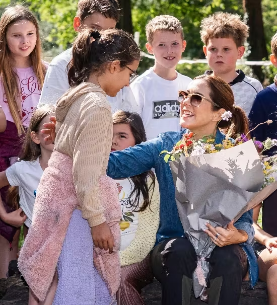 Mary var i godt selskab i skovområdet ved Ryvangen, hvor hun var omgivet af friske skoleelever fra lokalområdet.