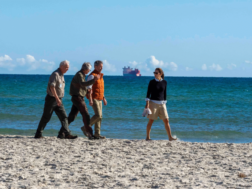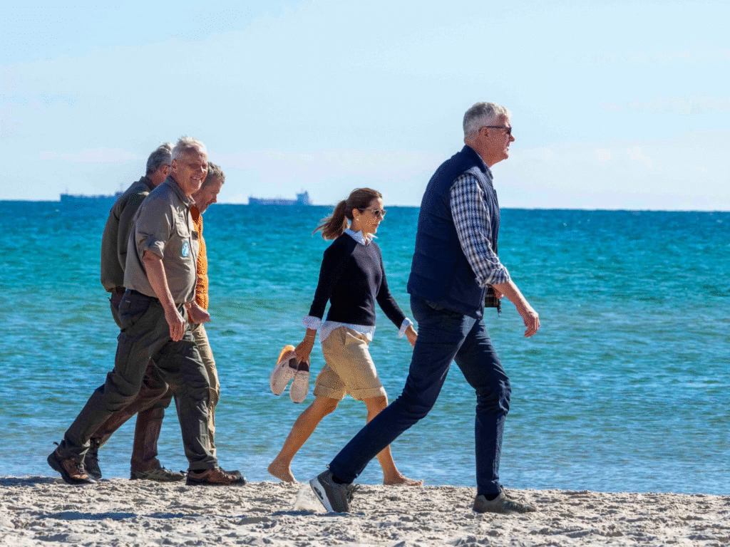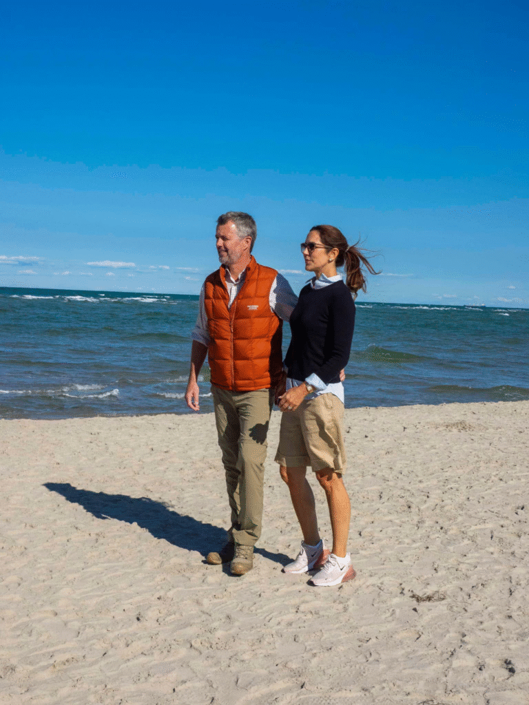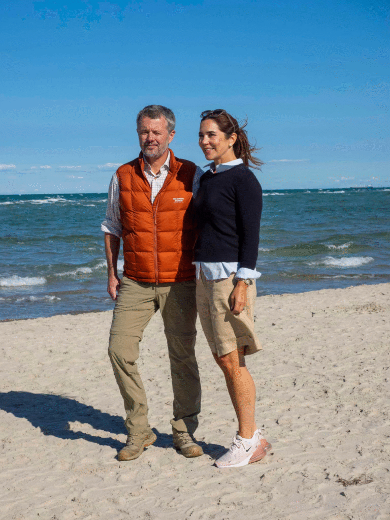 Da de besøgte Råbjerg Mile, fik parret sand mellem tæerne. Hvor vi normalt er vant til at se Mary i stiletter og Frederik i fine sko, så havde parret valgt at smide skoene, hvorved fusserne kunne mærke det solvarme vand.