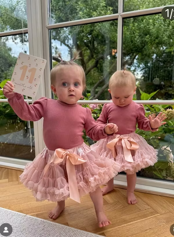 Vildt bedårende billeder: Morten og Frederiks tvillinger fejrer stor dag i strutskørter