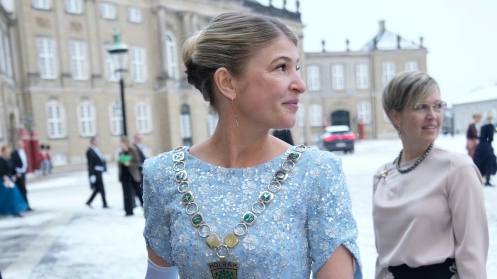 Holbæk-borgmesteren er ankommet til kongeparrets nytårskur i en isblå kjole, som nærmest er taget ud af Disney-filmen “Frozen”.