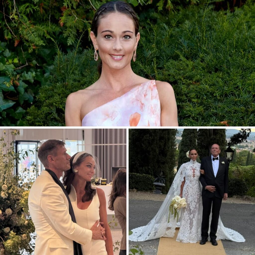 I Firenze blev hun gift i en glamourøs drøm af en blondekjole af den libanesiske Haute Couture-designer med base i Paris, Zuhair Murad.