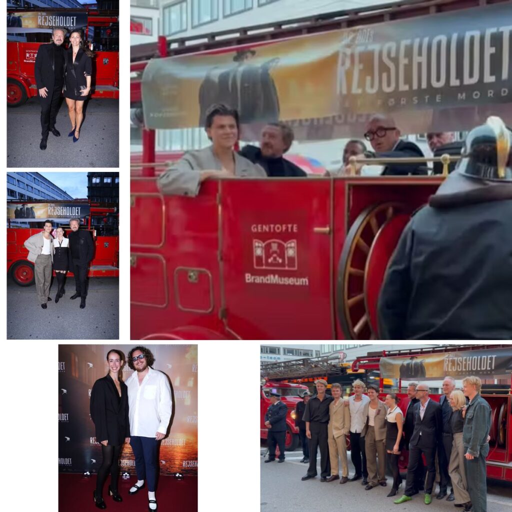 Castet til den nye film om rejseholdet ankommer med stil og røde blink i brandbiler til premieren